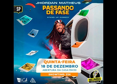 Jhordan MatheusHillarius Comedy Bar SPDia 18 de Dezembro (quinta)21h
