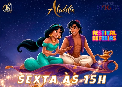Aladdin e Jasmine - Festival de Férias60 minutosTeatro Mooca - Mooca Plaza ShoppingEstreia dia 9 de Janeiro (sexta). até 30 de JaneiroSextas, às 15h.