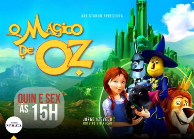 O Mágico de Oz no Teatro Mooca60 minutosTeatro Mooca - Mooca Plaza Shoppingaté 21 de DezembroQuintas e Sextas, às 15h; (sábado 20/12 e domingo 21/12) às 15h