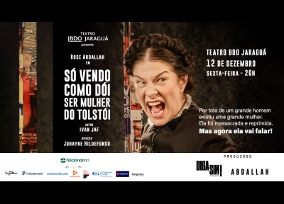 Só Vendo Como Dói Ser Mulher do Tolstói60 minutosTeatro BDO JaraguáDia 12 de Dezembro (sexta)às 20h