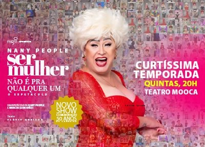 Ser Mulher Não É Pra Qualquer Um - O Espetáculo90 minutosTeatro Mooca - Mooca Plaza ShoppingEstreia dia 8 de Janeiro (quinta). até 29 de JaneiroQuintas, às 20h