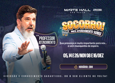 Socorro! Meu atendimento sumiu.105 minutos.Marte Hallaté 16 de DezembroQuartas, Sexta, Segunda e Terça (5, 14 e 26/11; 8 e 16/12) às 20h.